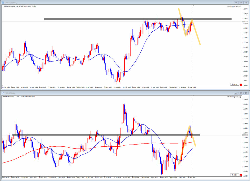 加えて、週足では前回安値を大きくブレイクしてその戻り目の位置なのでプラス根拠と考えます。