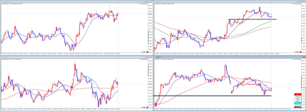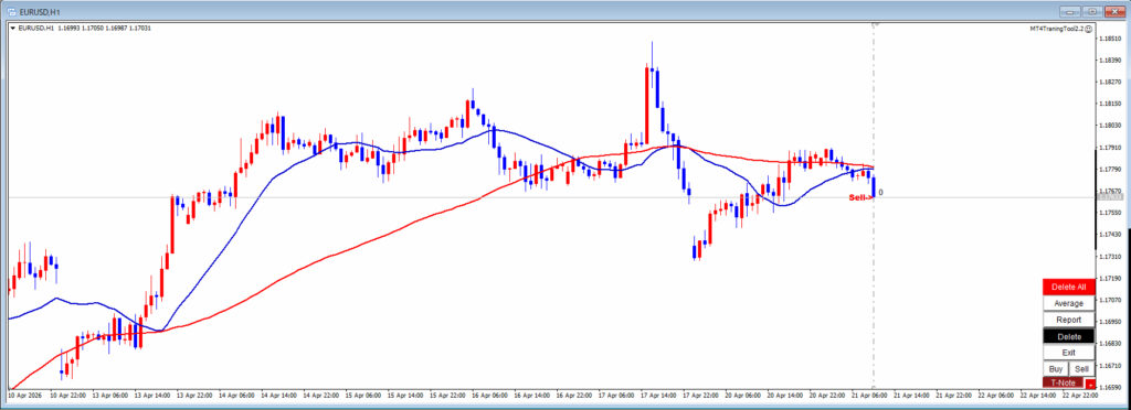 1時間足は、4時間足戻り目ポイントでMAが収縮から拡散をしそうな状況。